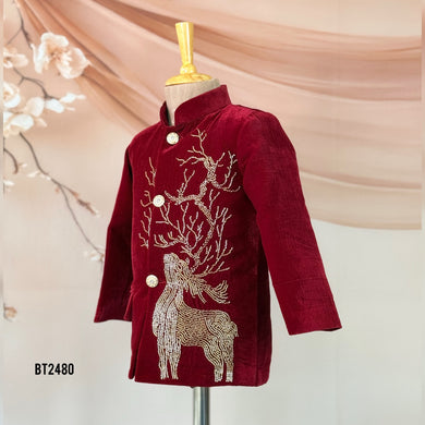 • 🦌 BT2480 Majestic Deer Maroon Velvet Jodhpuri Suit for Baby Boys