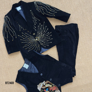 🖤 BT2469 Underwater Theme Velvet Baby Boy Party Blazer Set