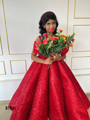 BT1931 Radiant Red Lace Party Dress for Baby Girls