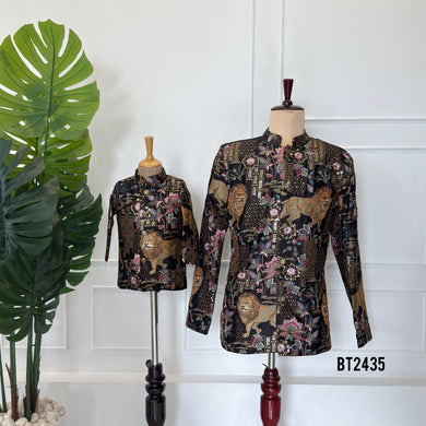 BT2435 Designer Dad and Son Combo Jacket Set with Royal Lion Jungle Theme