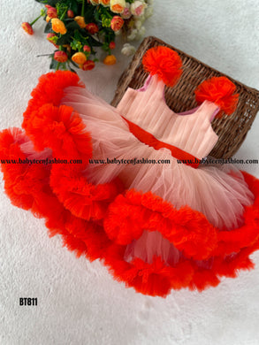 BT923 Ruffle Party wear Frock with Pearl for Birthday party