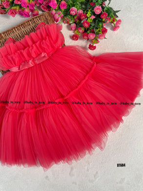 BT684 Radiant Ruby Ruffles Dress - Perfect for Celebratory Splendor