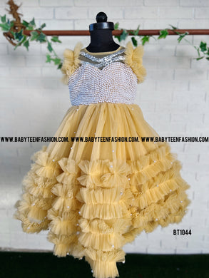 BT1044 Golden Glow Layered Gown - Shimmer into the Spotlight!