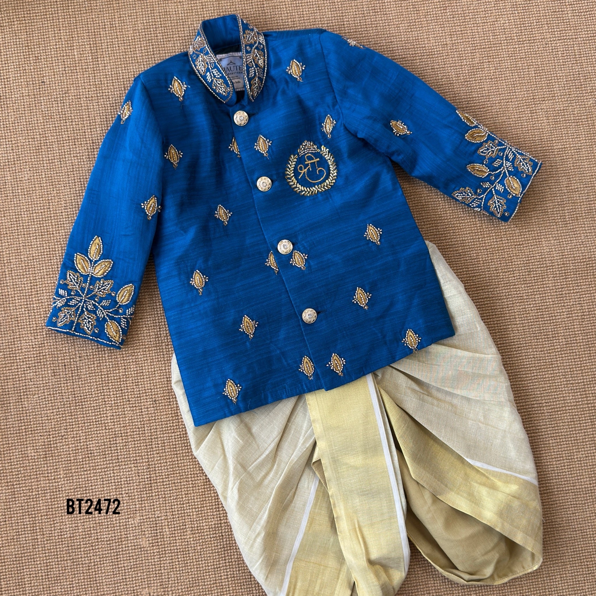 💙 BT2472 Royal Blue Heritage Baby Boy Jodhpuri with Dhoti Pants