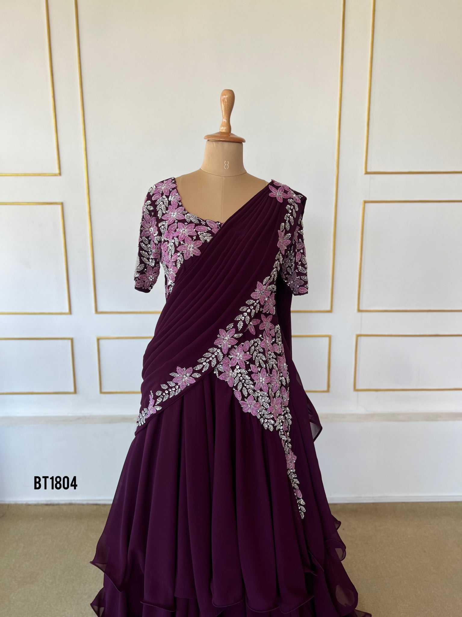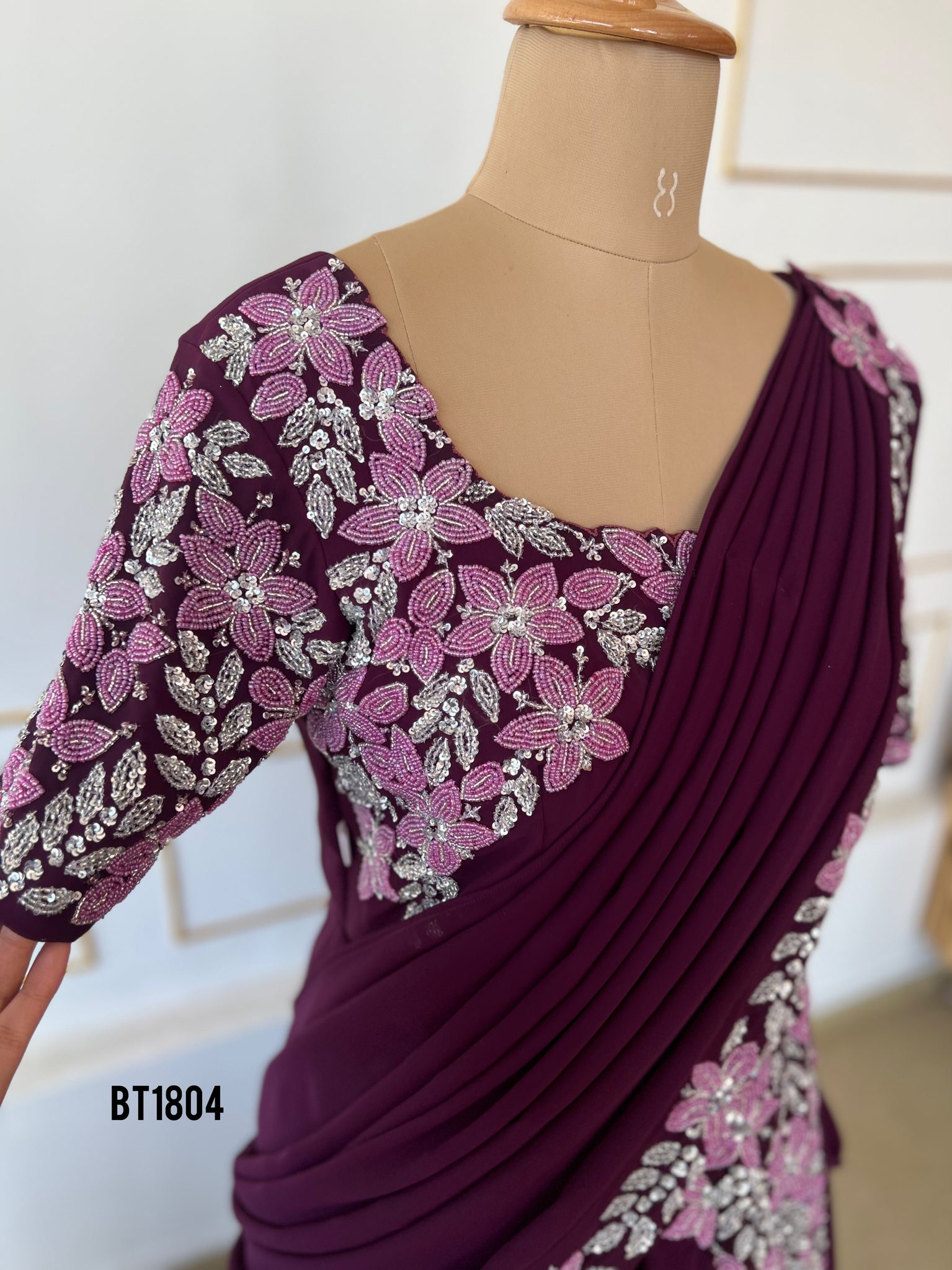 - Glamorous Design: Flaunt a gorgeous draped style with intricate silver and pink floral embroidery, perfect for those picture-perfect moments.