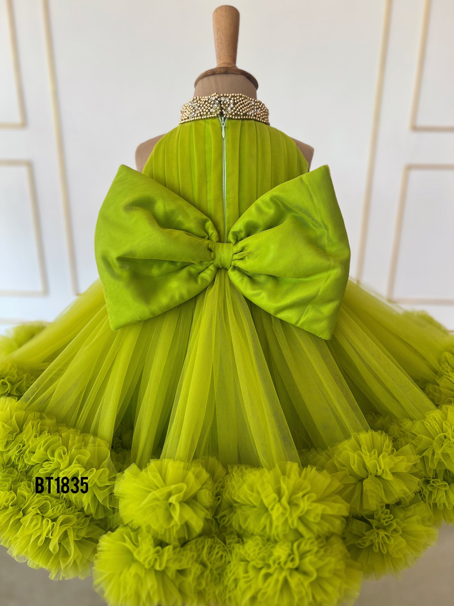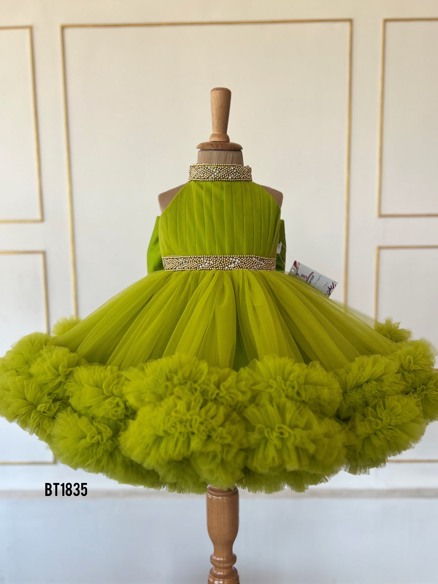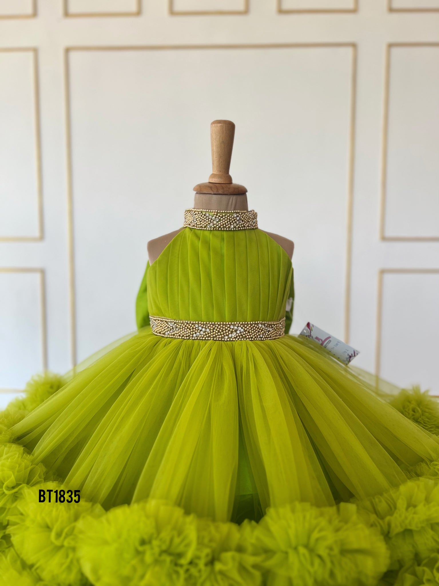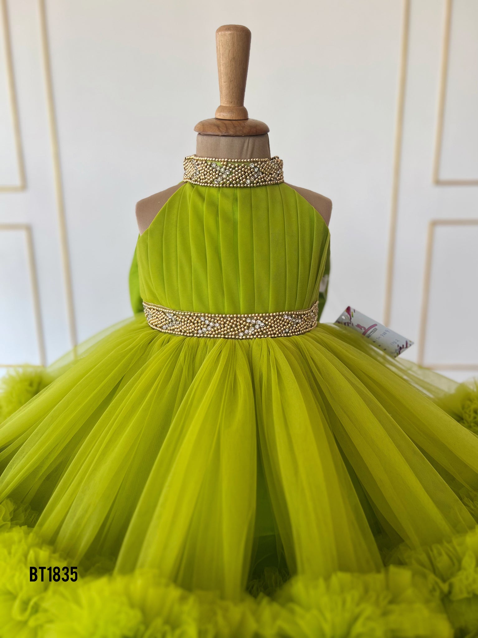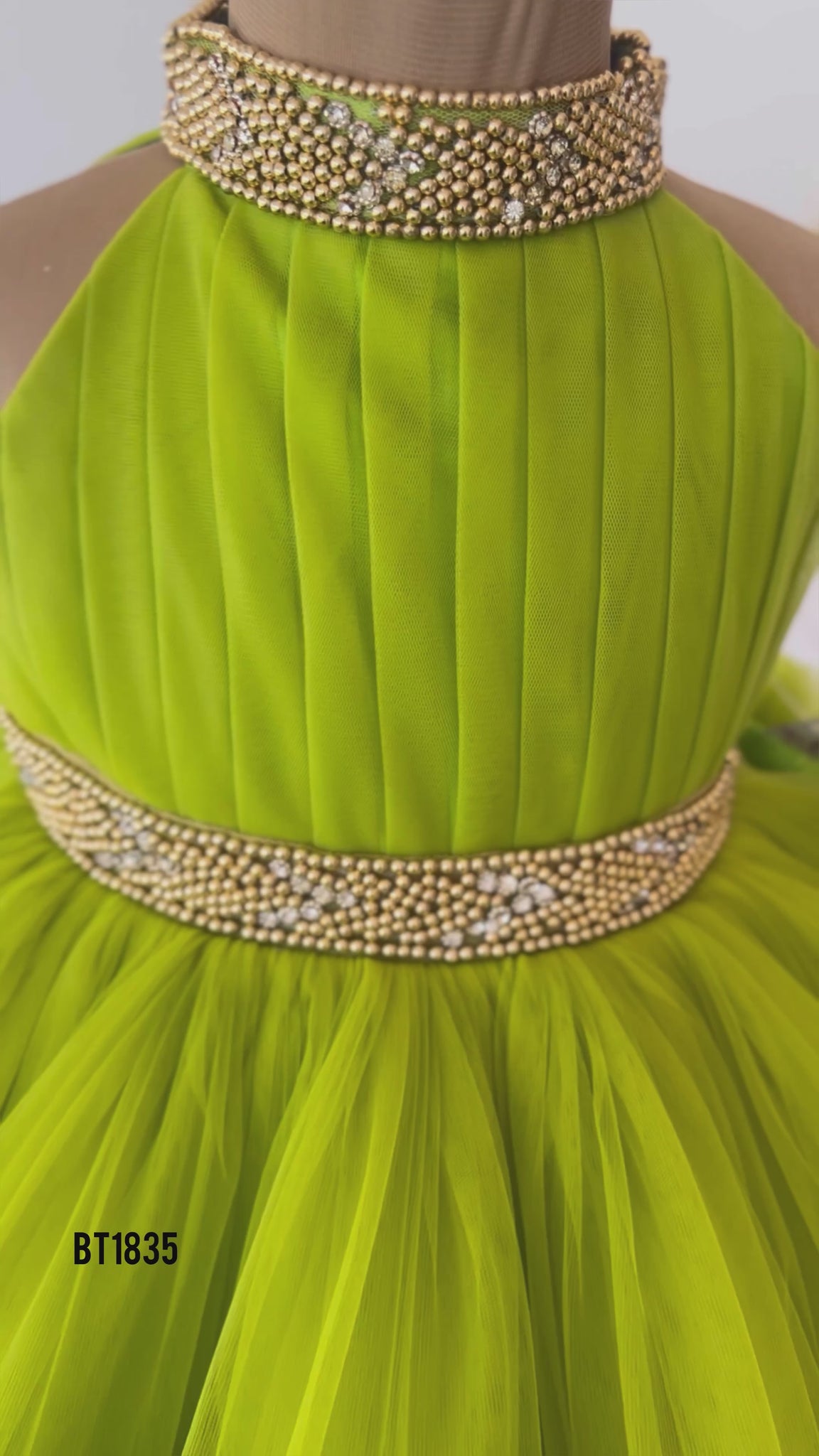 🍀✨ Illuminate the room with the Lime Light Gala Dress, a vibrant burst of color that brings life to every party. This dress is a celebration of fun and fashion, designed to make your little one the star of any event. With its zesty hue and sparkling details, it’s a joyful expression of childhood exuberance.