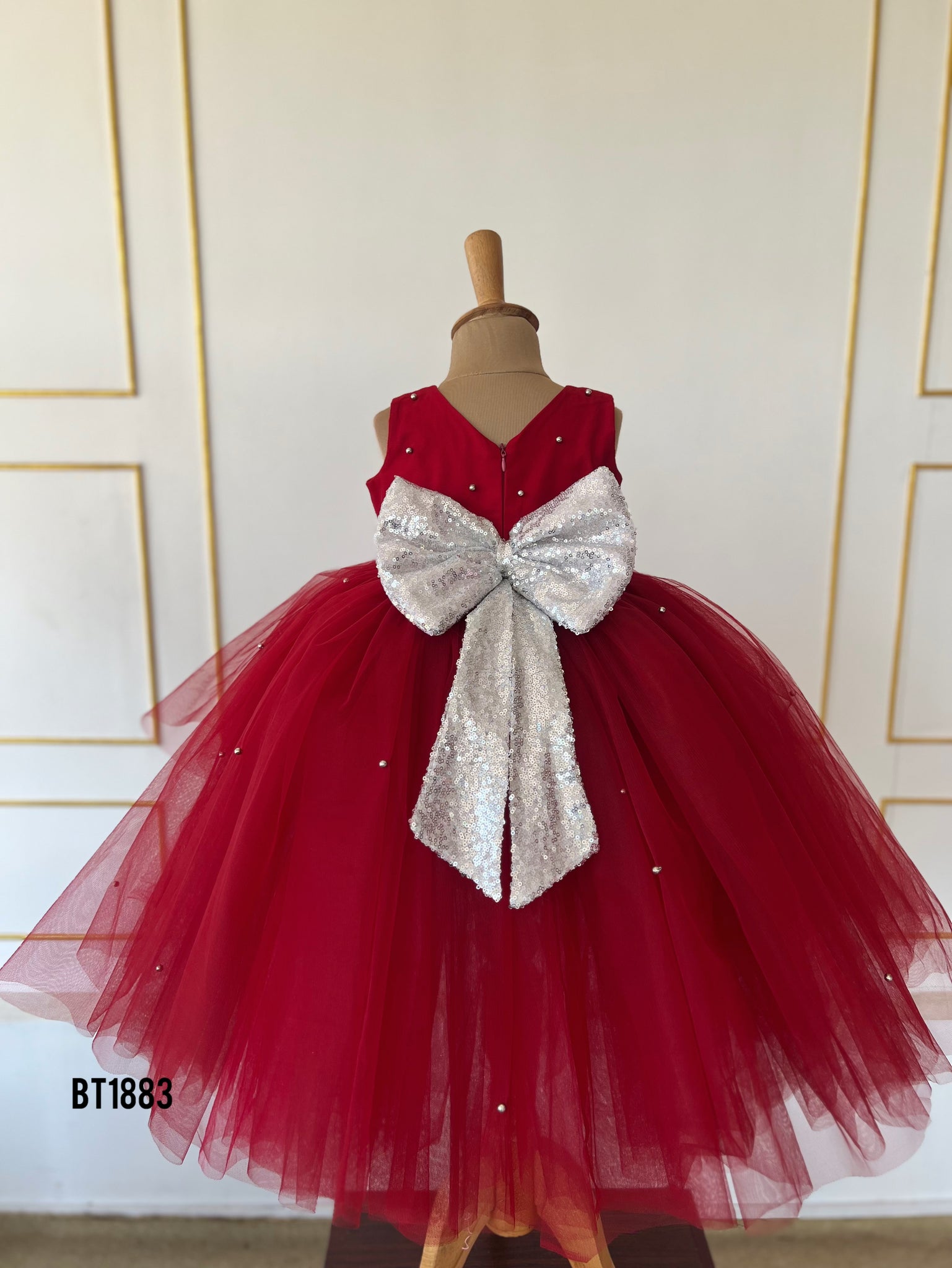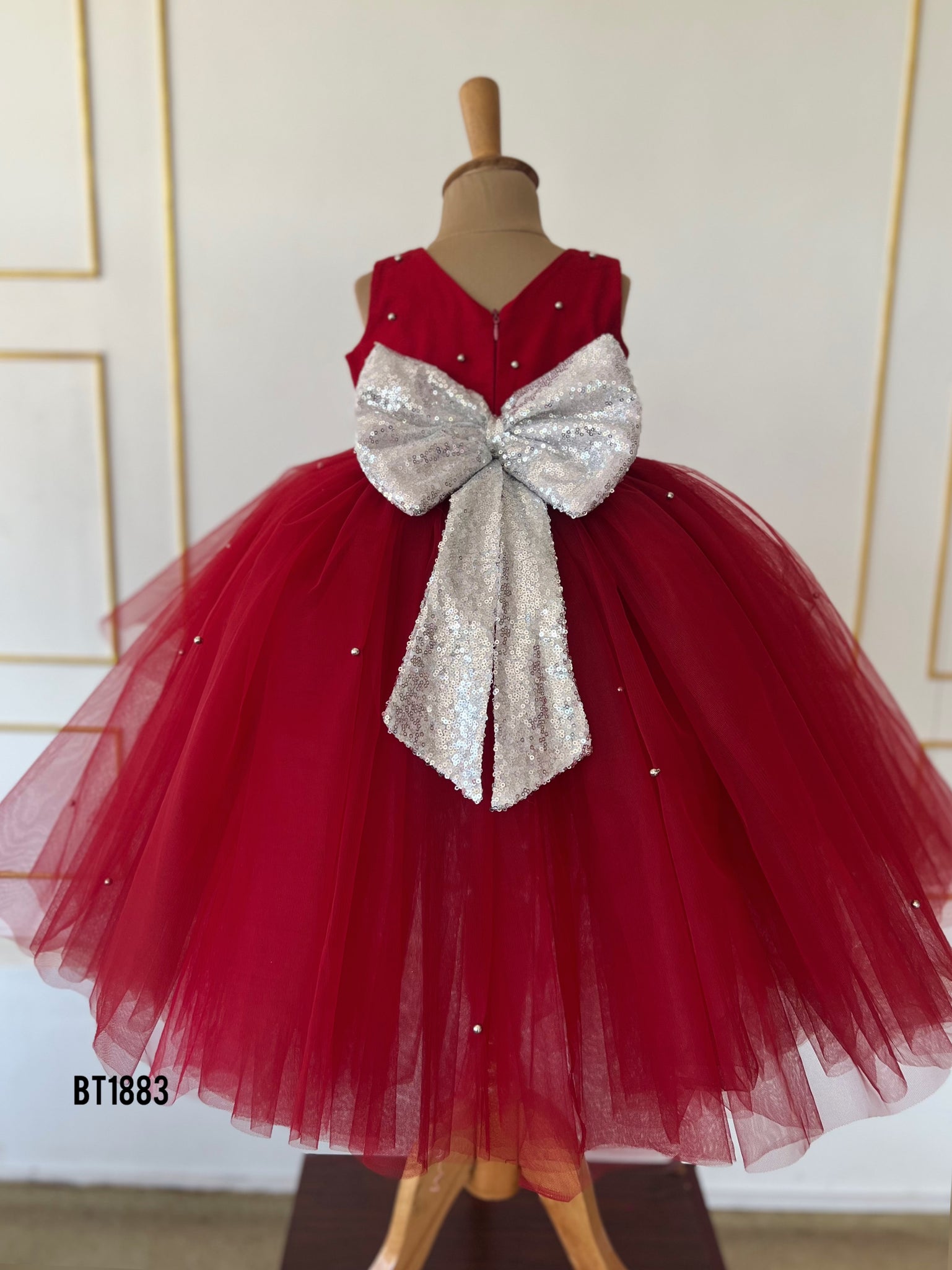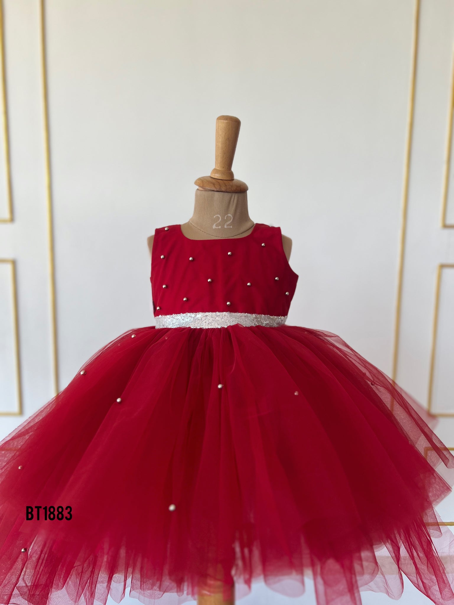BT1883 Crimson Sparkle Party Frock Twirl-Ready for Little Divas