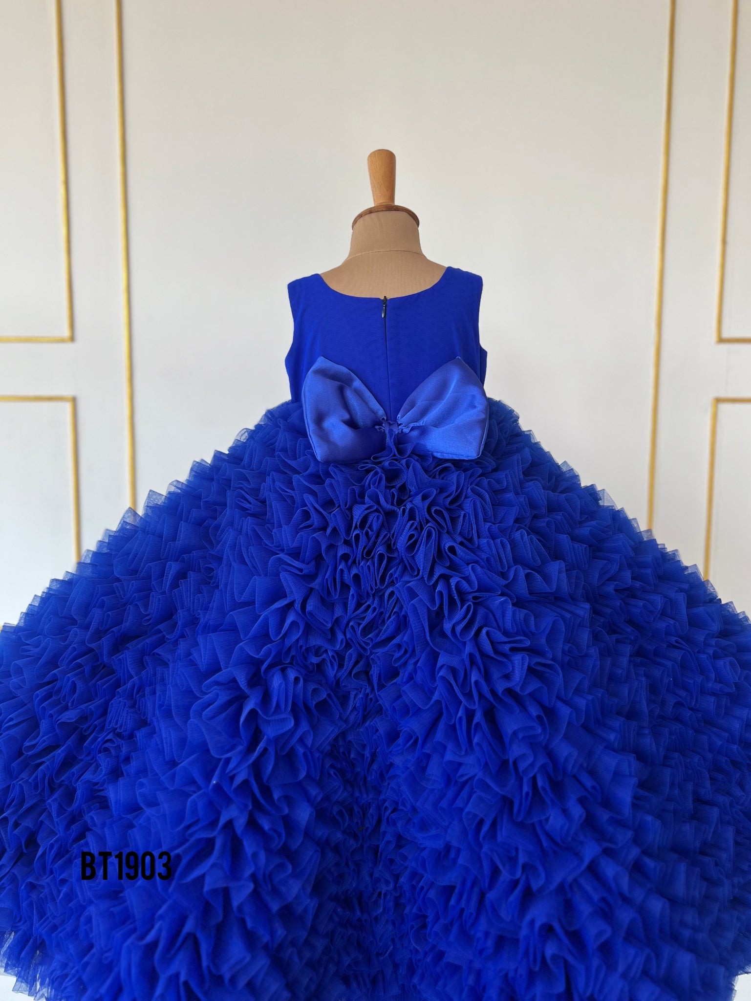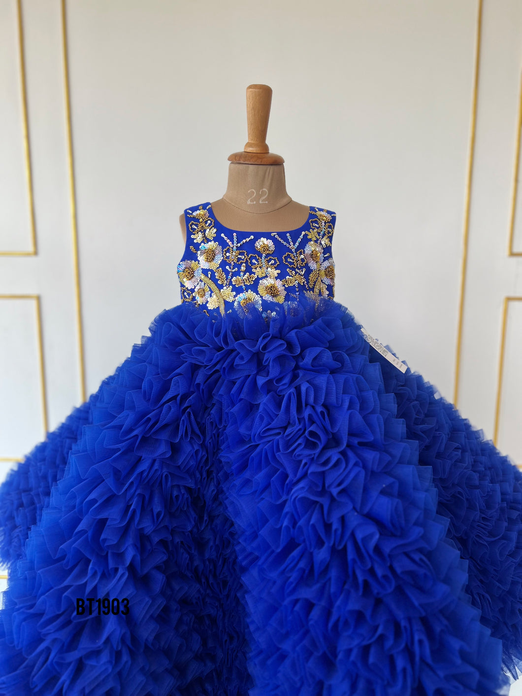BT1903 Royal Blue Blossom: Luxurious Baby Party Dress
