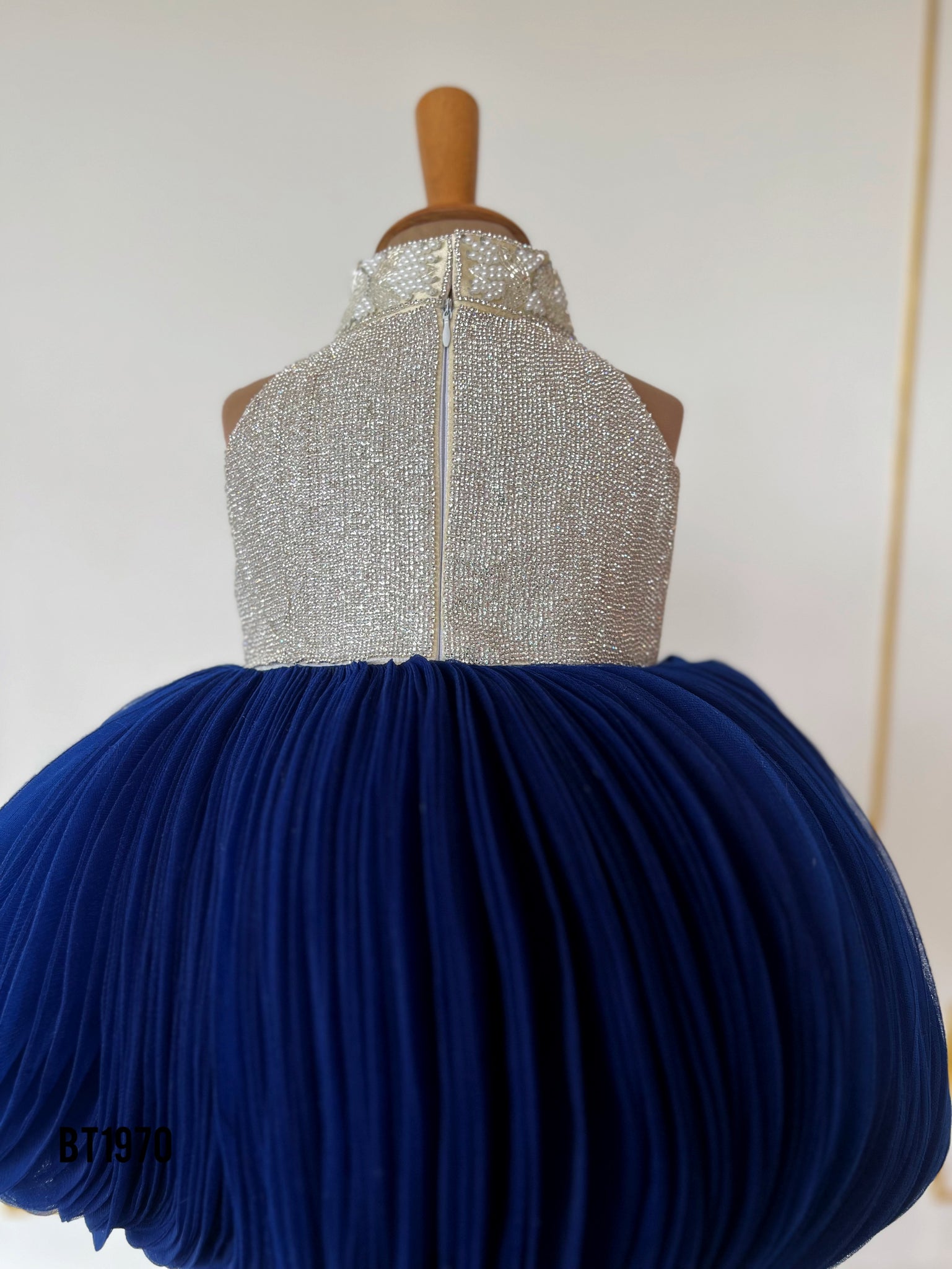 Navy Blue Dress: An elegant piece featuring a shimmering sequined bodice and a voluminous skirt, designed to make your baby shine. 👶💙