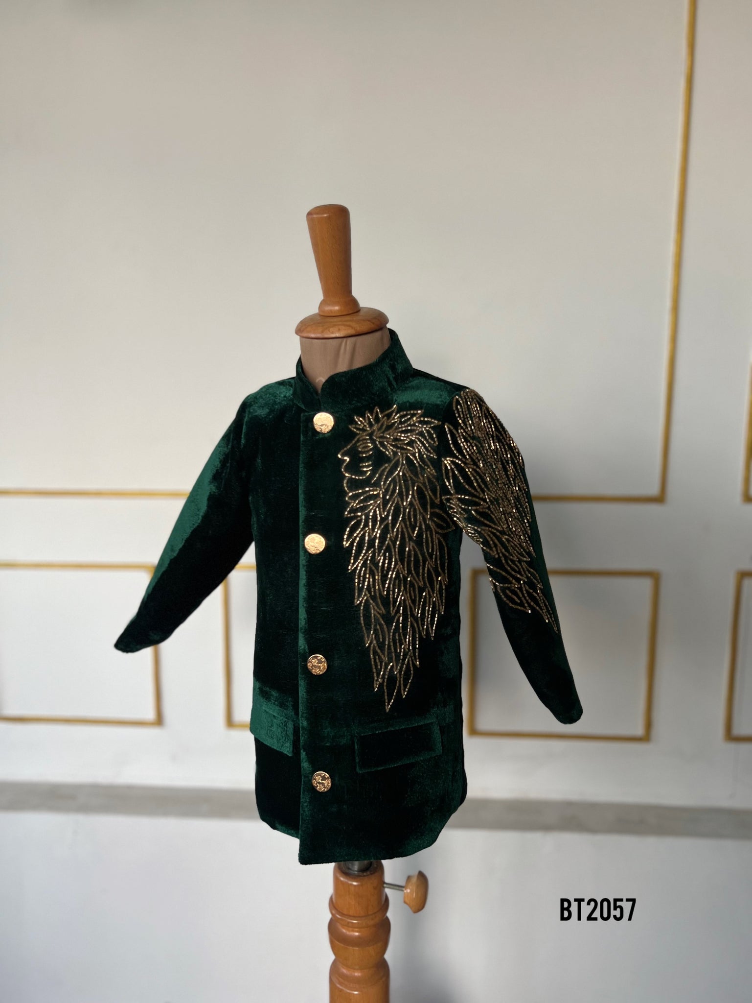 BT2057 🦁 Regal Lion Embroidered Velvet Sherwani for Boys 🦁