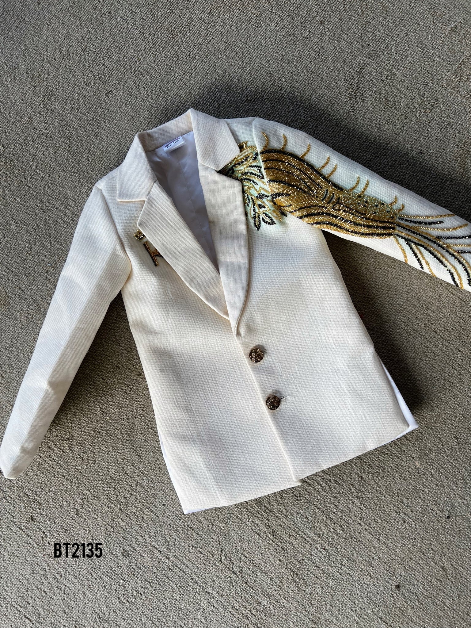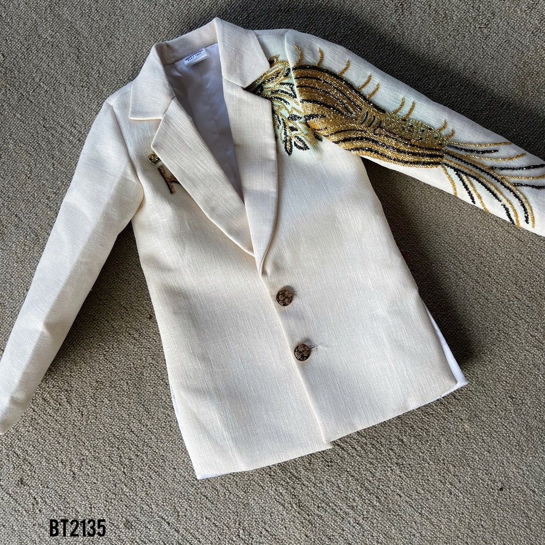 Dressed to impress, your little prince will steal the spotlight in this Golden Majesty Party Suit! Perfect for birthdays, weddings, or any special celebration, this suit blends classic elegance with a bold modern twist. 🌟👦
