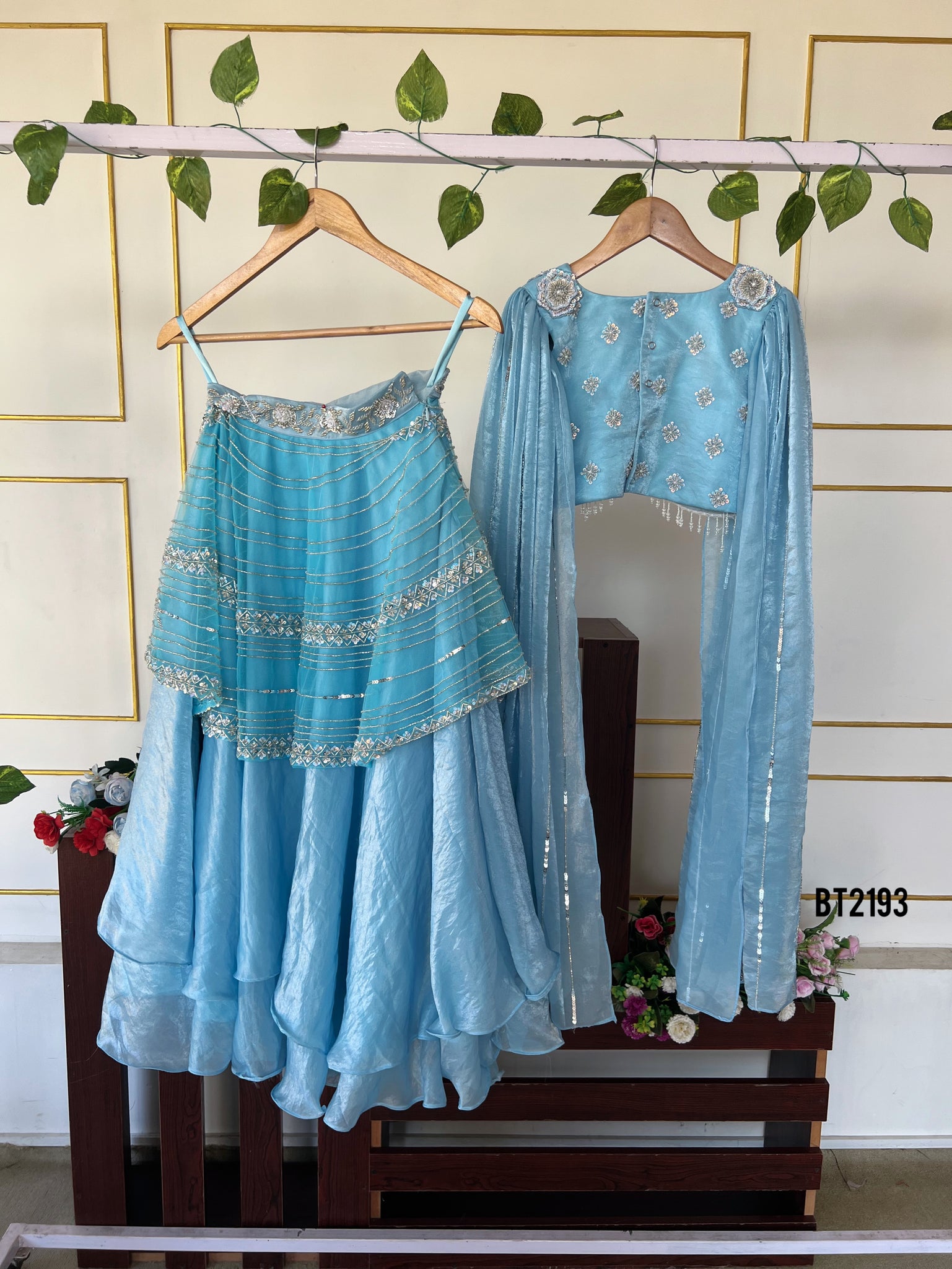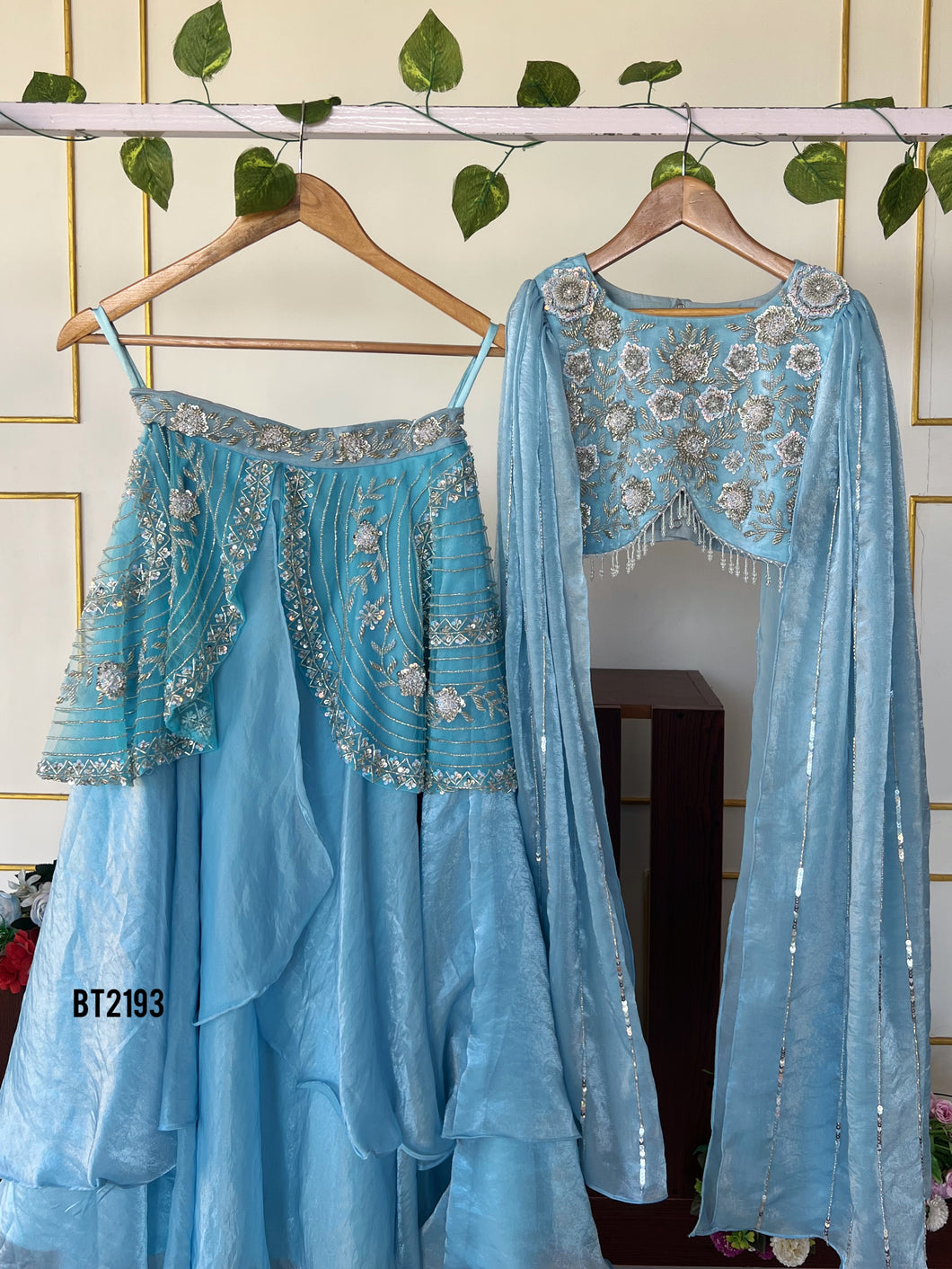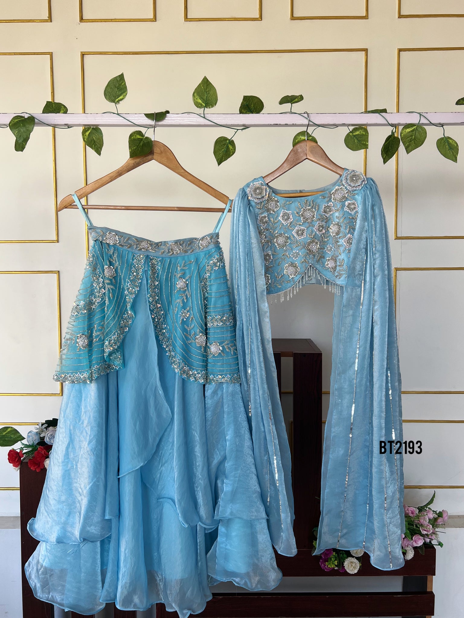 Gorgeous Layered Gown: The flowing icy blue layers create a dreamy silhouette, perfect for your little one’s grand entrance. 🌟