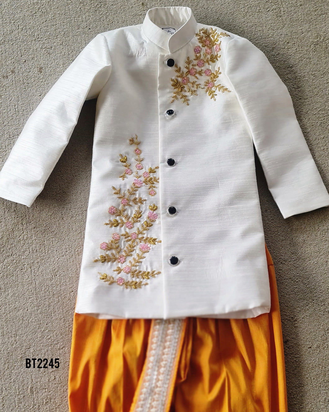 ✔ Soft Ivory Fabric for Supreme Comfort ☁ – Keeps your little one looking dapper without compromising on comfort.