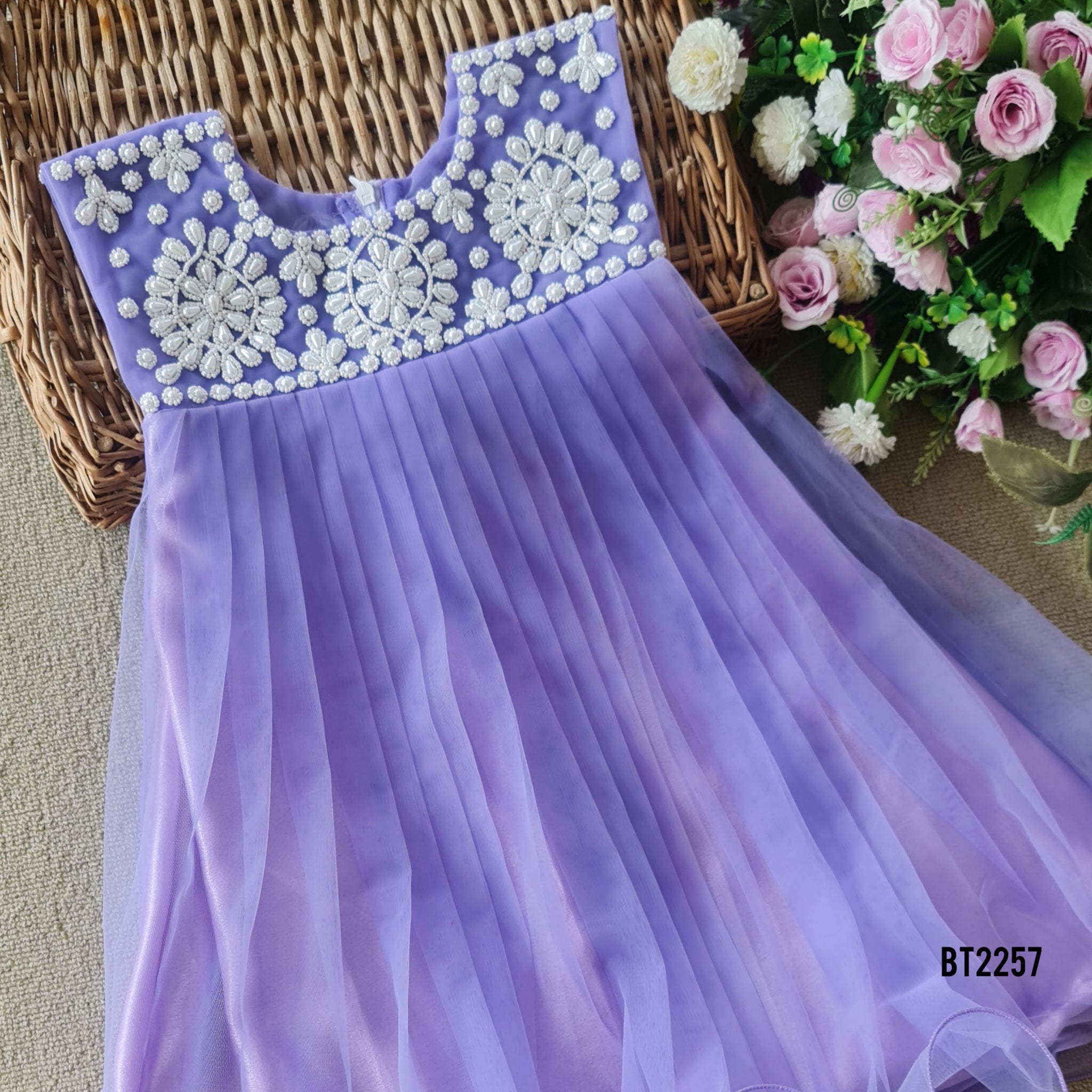👑 Every princess deserves a dress that sparkles as much as her smile! This enchanting lavender gown is designed for little queens who love elegance and grace. With intricate pearl and crystal embroidery on the bodice and soft cascading layers, this dress is perfect for birthdays, fairytale parties, and celebrations where she deserves to shine! ✨💜