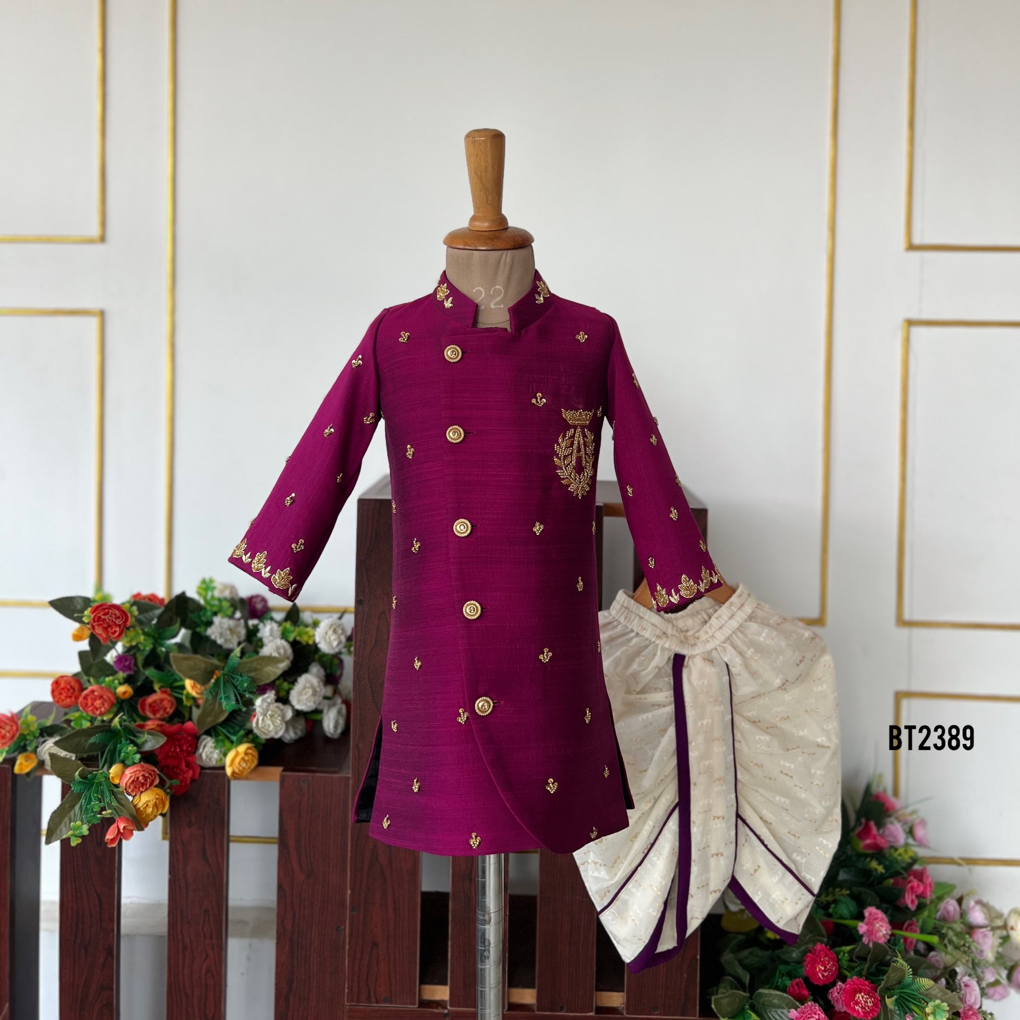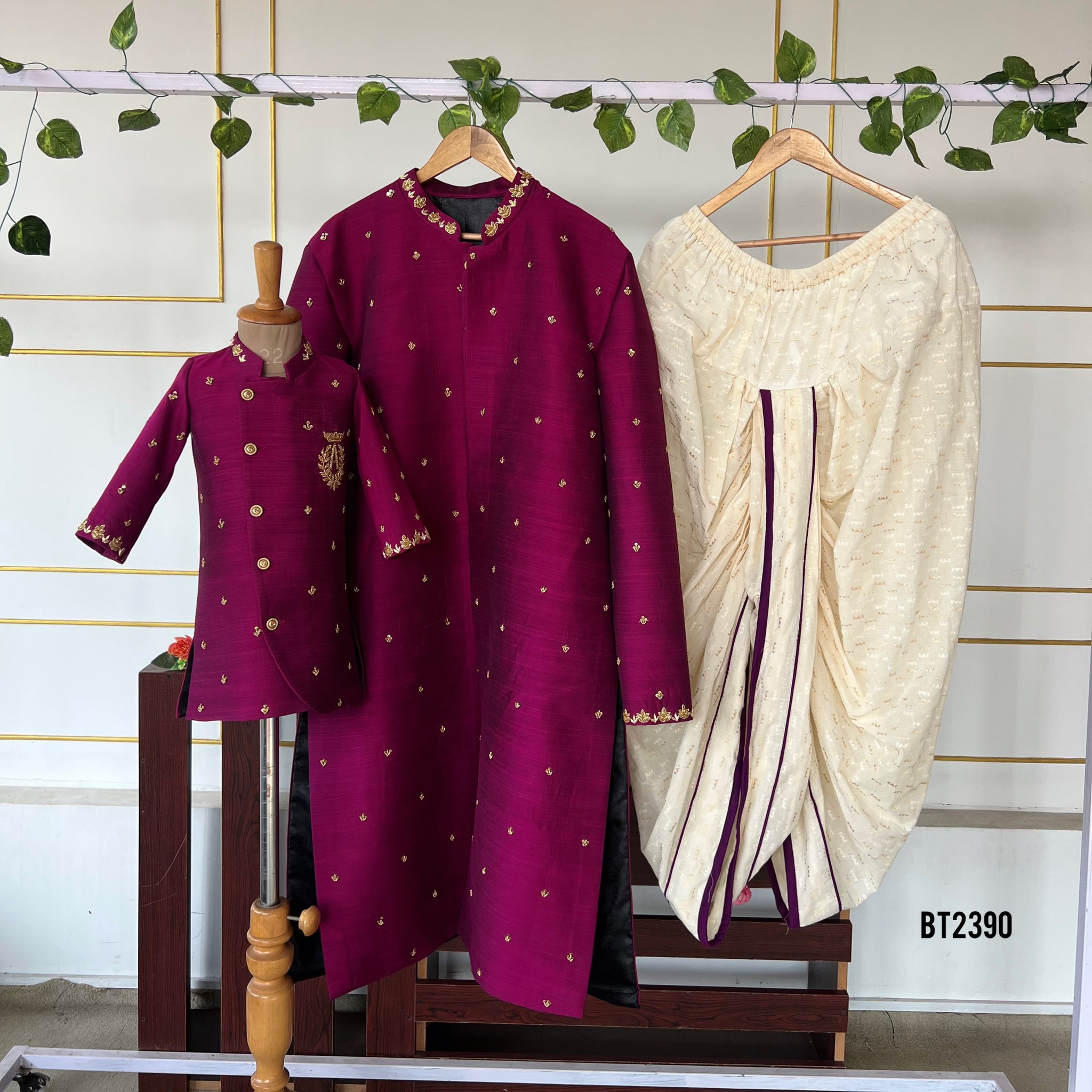 Celebrate timeless tradition and togetherness with our Royal Purple Father-Son Sherwani Set with Cream Dhoti 👑 – designed for families who love to make every moment unforgettable.