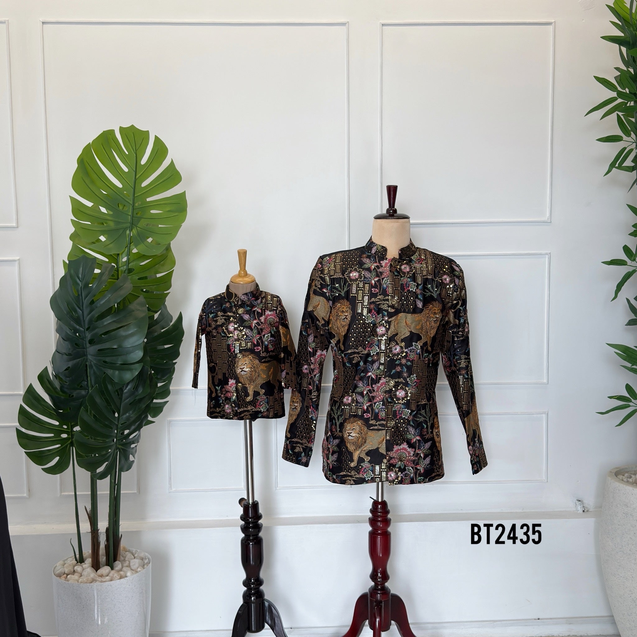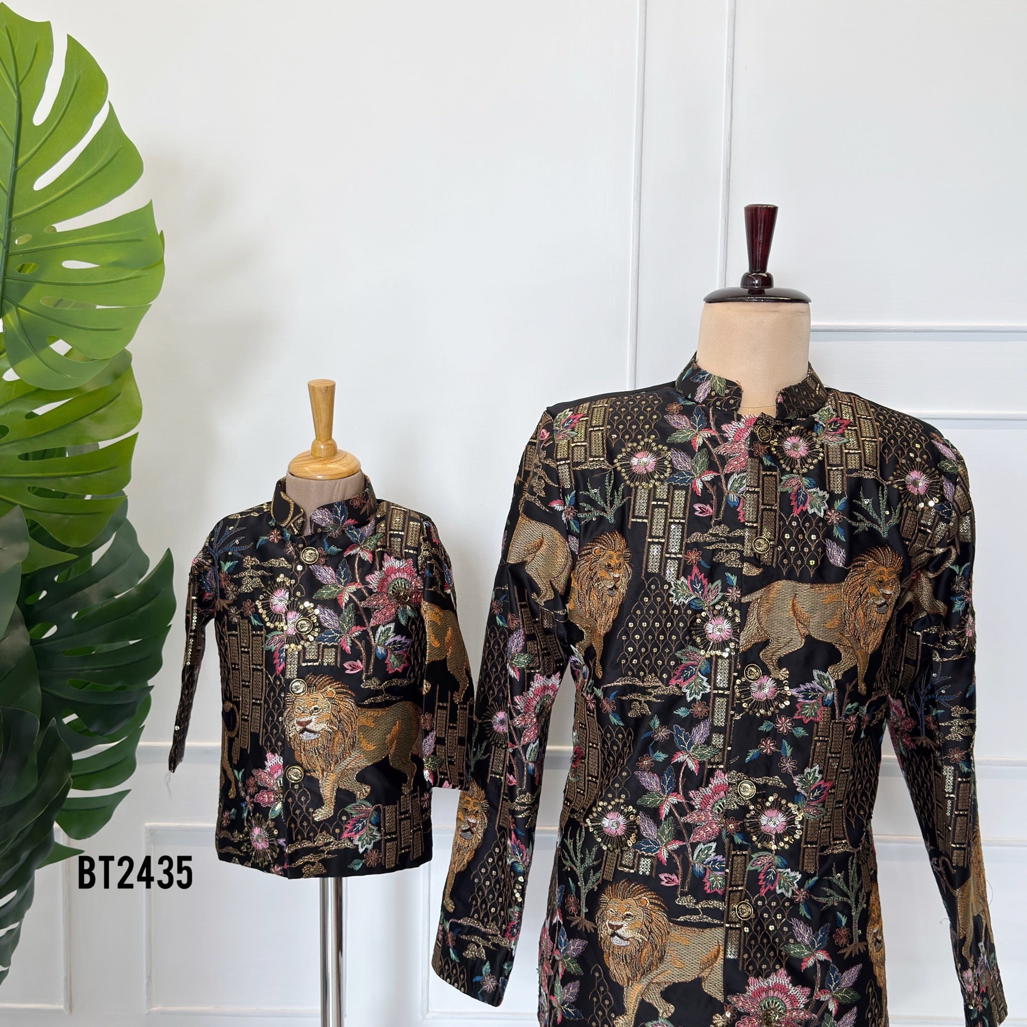 Turn every celebration into a royal moment with this BT2435 Designer Dad and Son Combo Set, crafted in a rich black base with magnificent gold lion motifs and floral embroidery 👑🦁