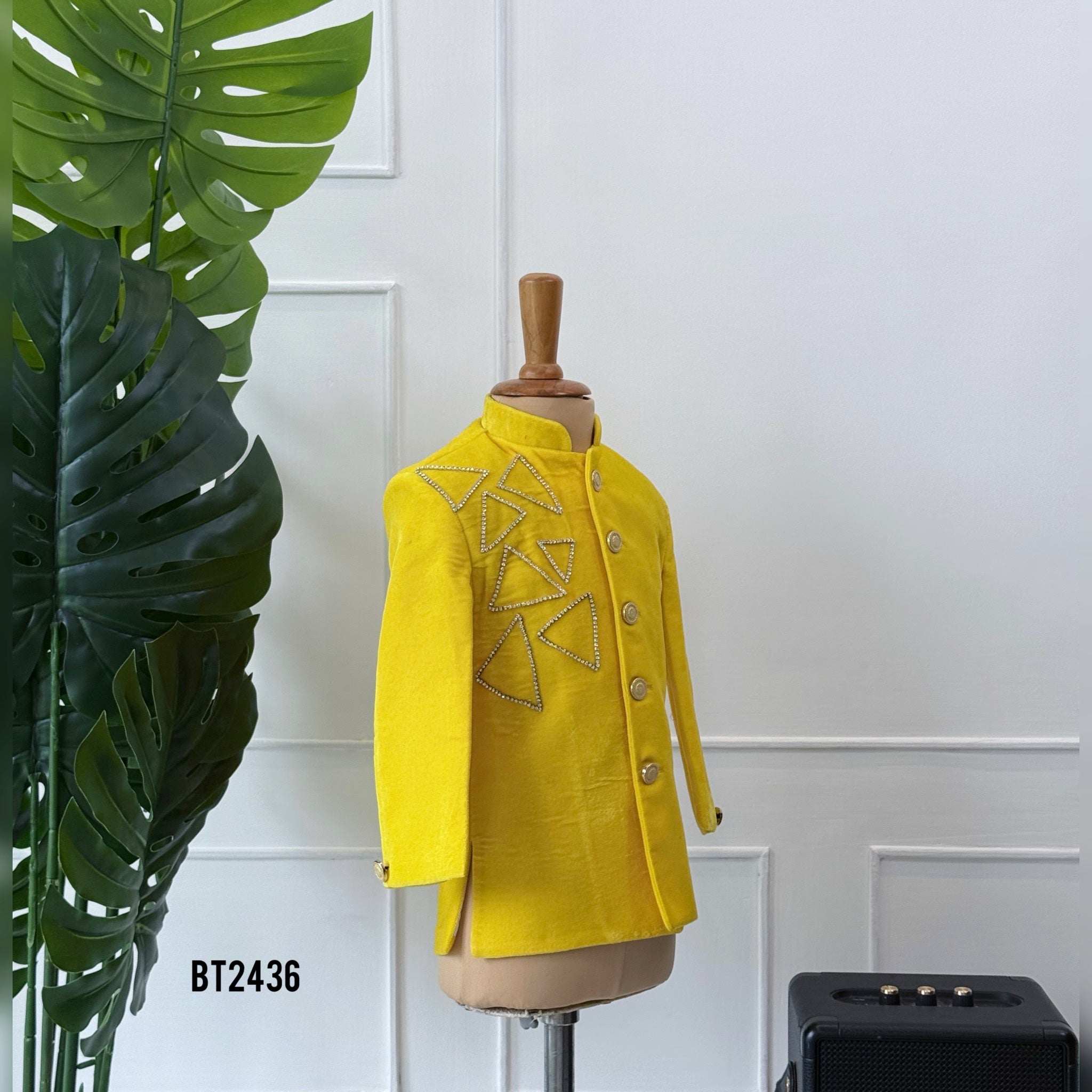 Let your little star shine bright in this BT2436 Designer Baby Boy Party Wear Blazer, a striking sunshine yellow outfitthat captures modern elegance and playful charm ☀️✨