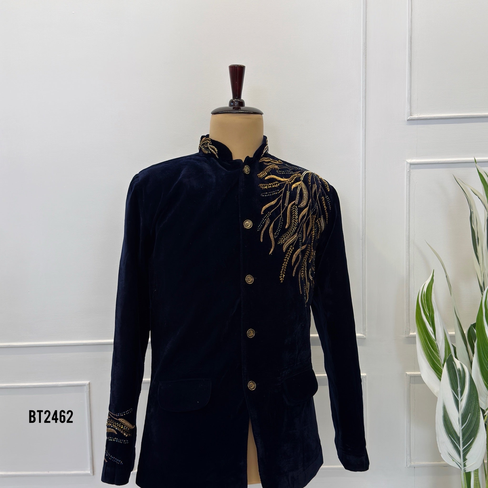 BT2462 Royal Leaf Cascade Embroidered Velvet Jodhpuri for Dad 🌿✨