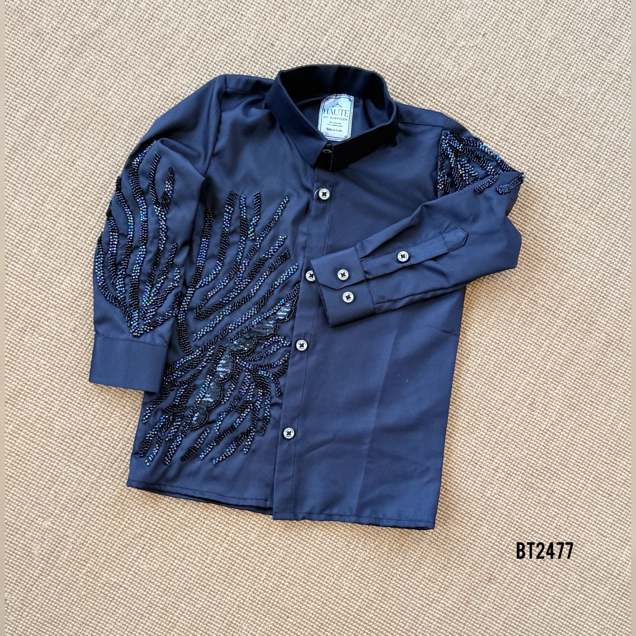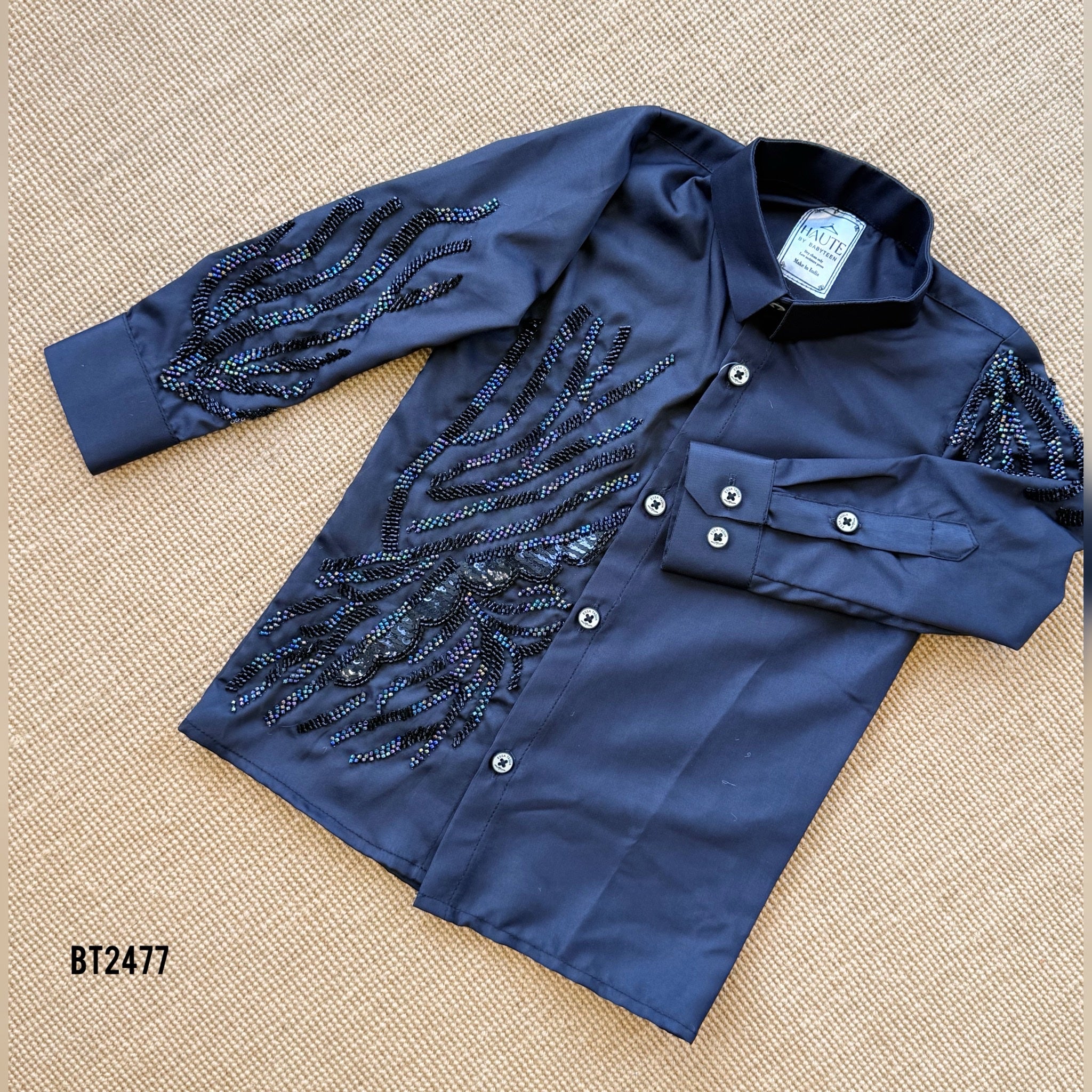 Jet-black designer shirt with premium sequin and bead embellishments âš¡
