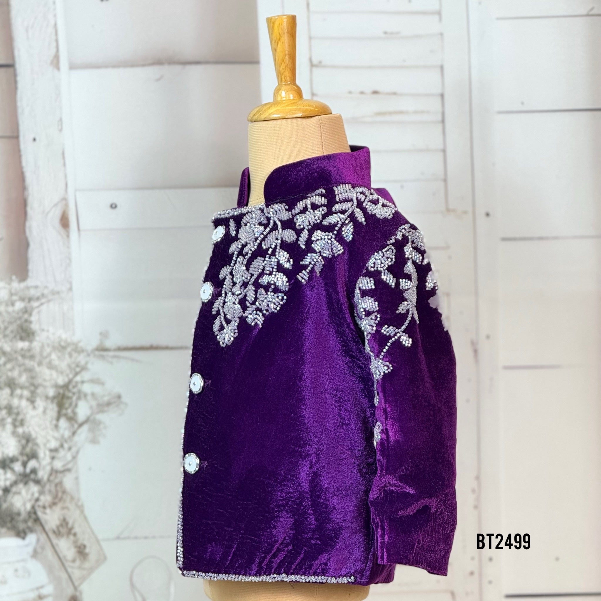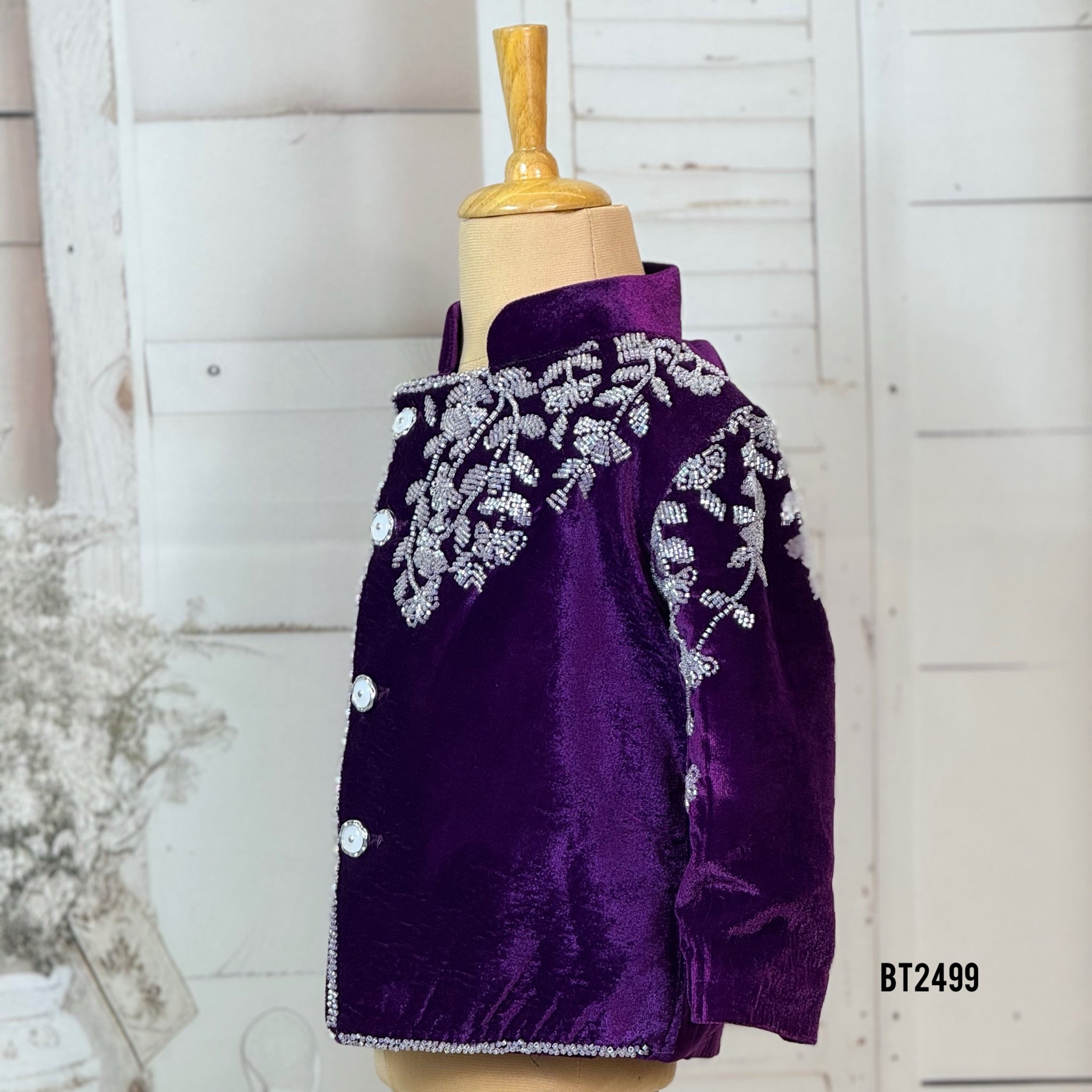 Bring out the royal charm in your little prince 💜 with this BT2499 Royal Purple Velvet Indo-Western Outfit, designed to make every celebration unforgettable! 👑