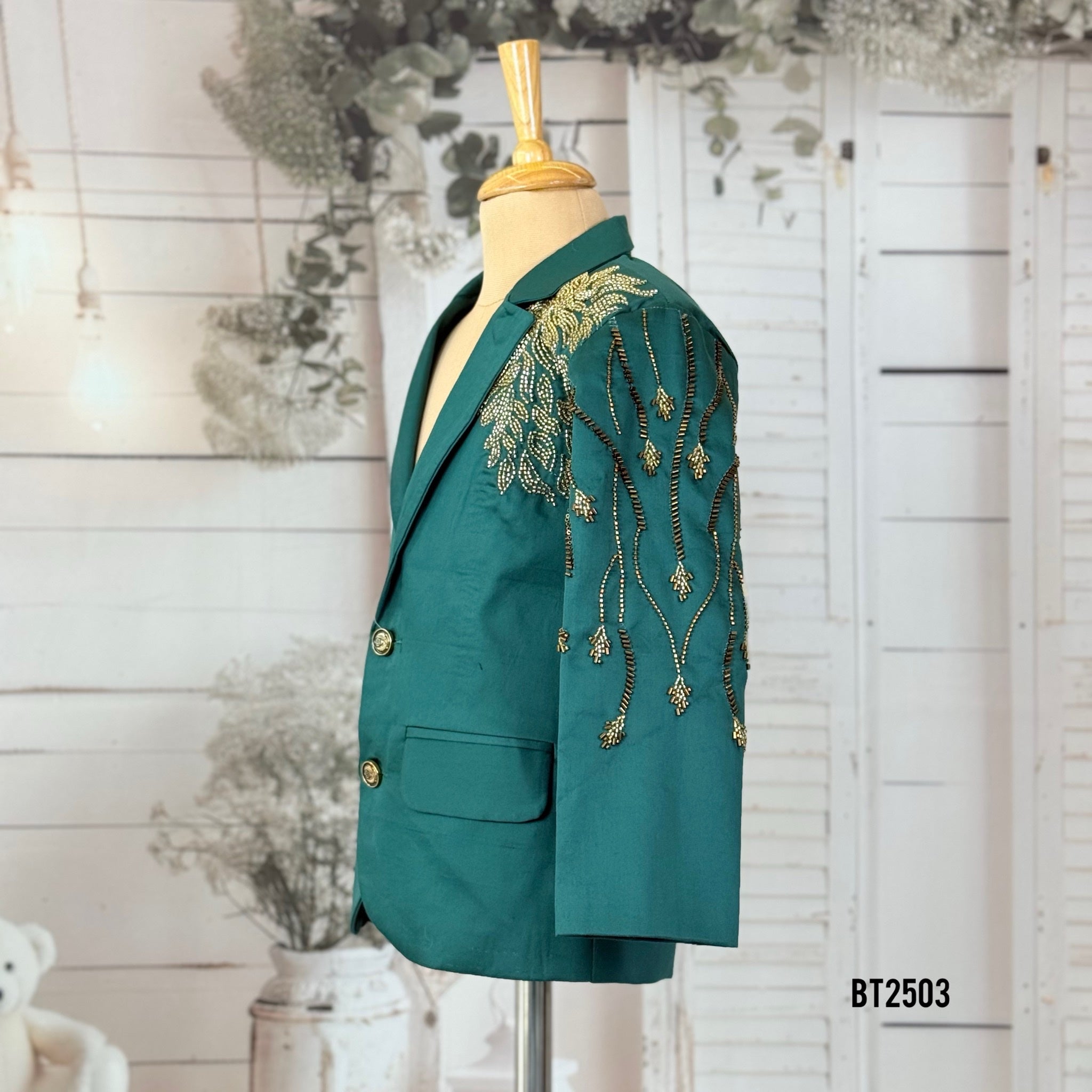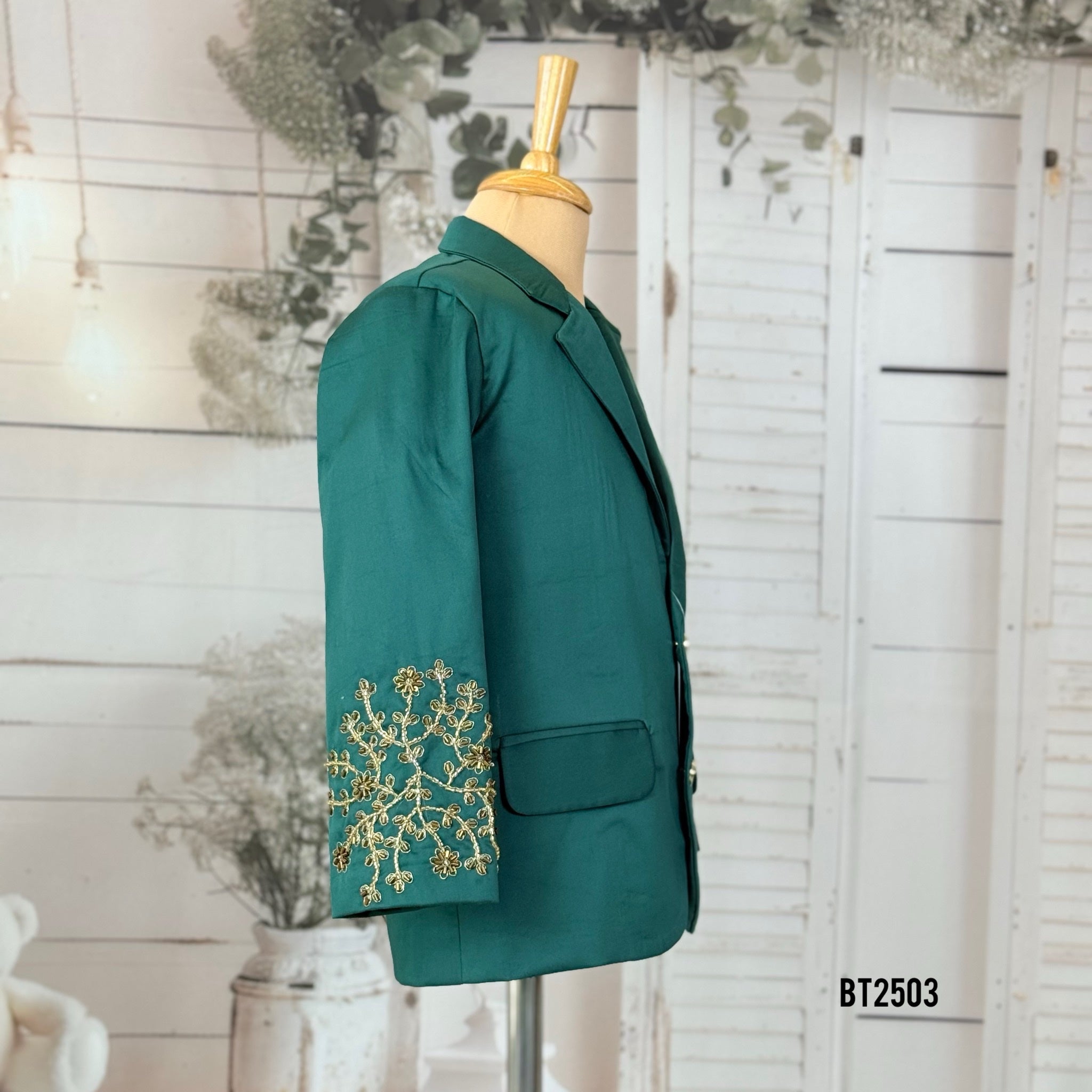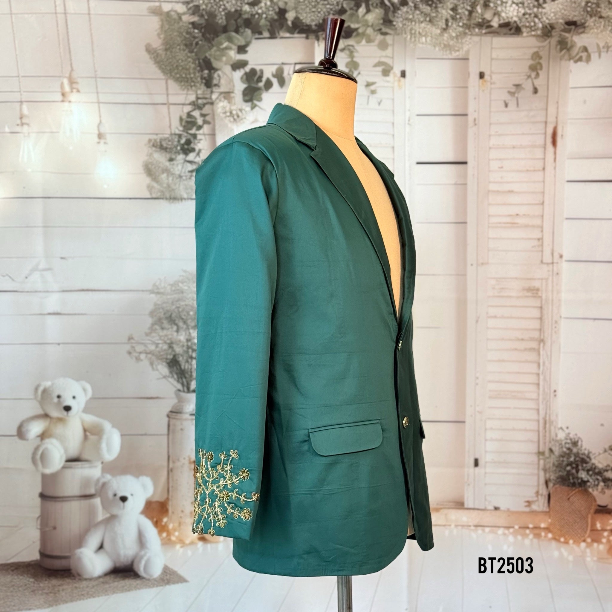 👦 A Baby Boy Blazer with detailed sleeve embroidery for a classy mini look.
