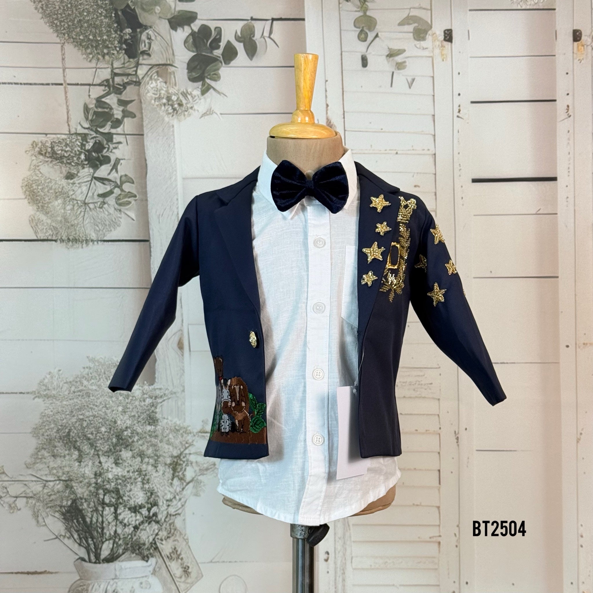 Let your little star shine bright ⭐ with this BT2504 Black Embroidered Baby Boy Blazer, crafted for the little gentlemen who love to stand out in every celebration! 🖤